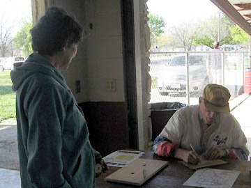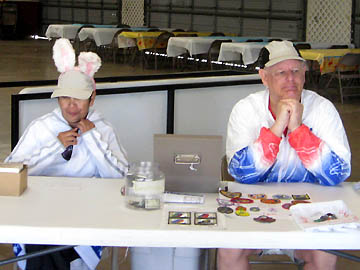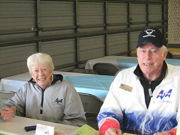 Elaine and Heize working the finish table.