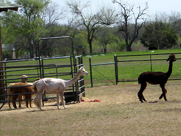 Alpacas that have been shorn for their wool. Members of the camel family.