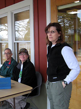 Two walkers and the checkpoint volunteer. |