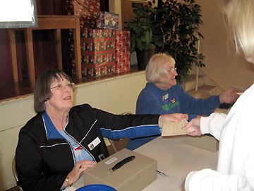 Pat and Darlene manning registration table at St. Joseph's Halle. |