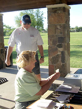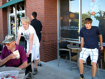 Helen manning the checkpoint at the Starbucks. |